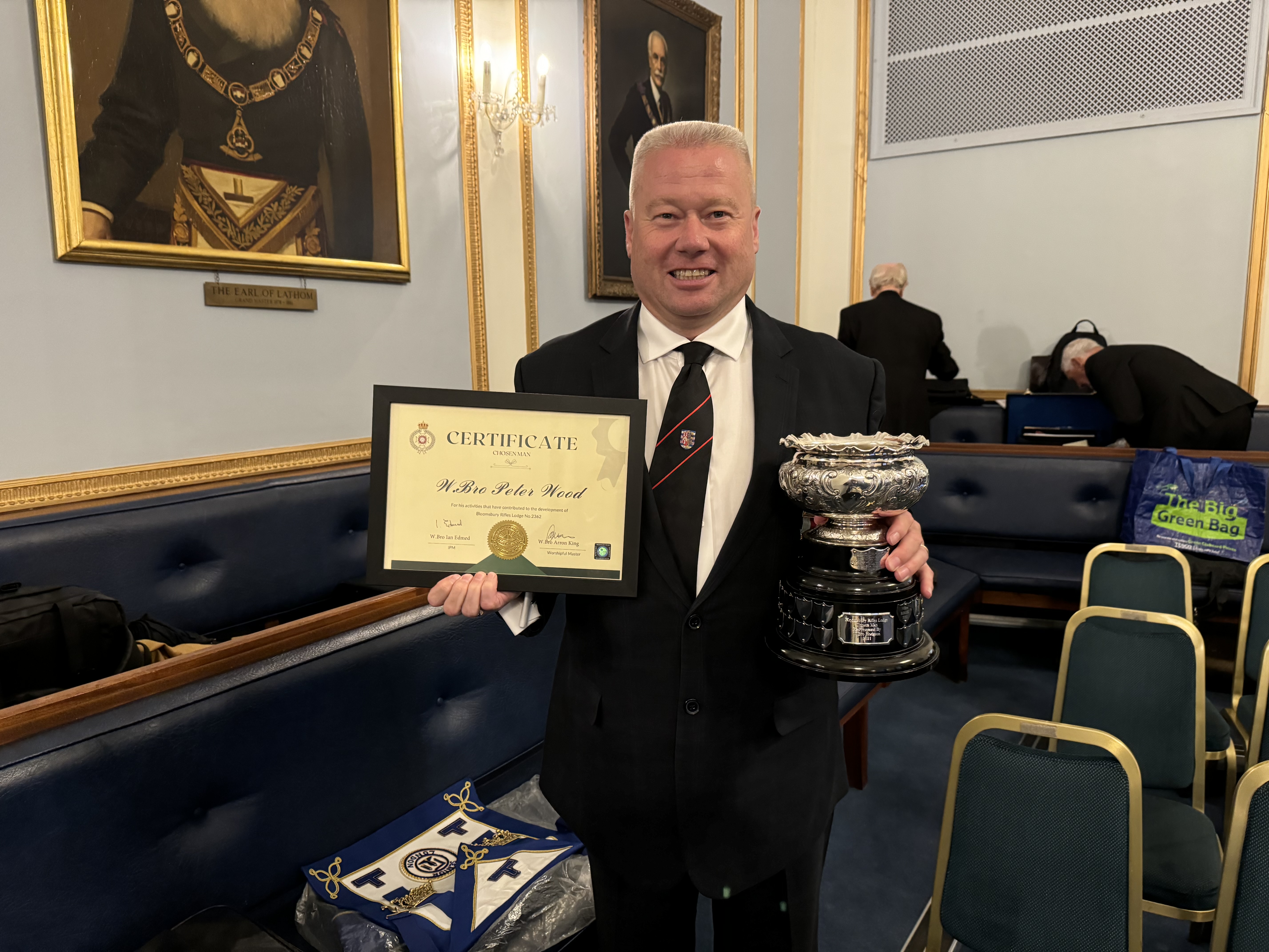 The award remains alive today within the Lodge to commend one brother per year for exceptional service to the Lodge. The year W.Bro. Peter Wood has been awarded the Victorian Rose Bowl, which was first awarded in the Regiment for exceptional drill and class.
